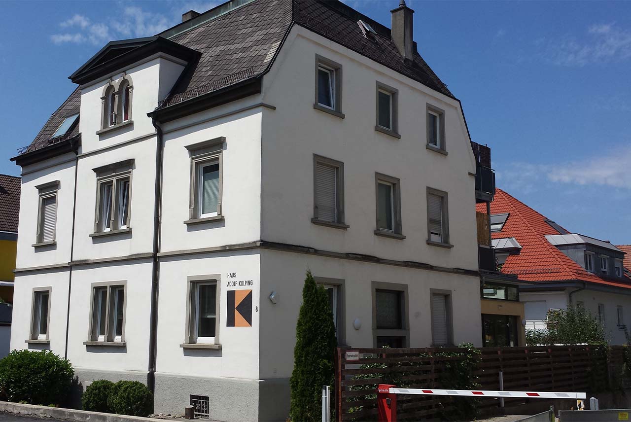 „Haus Adolf Kolping“, zentrale Lage, ca. 2 Gehminuten vom Grünen Turm entfernt, hinter Stadtarchiv neben dem „Institut für soziale Berufe (IfsB)“
